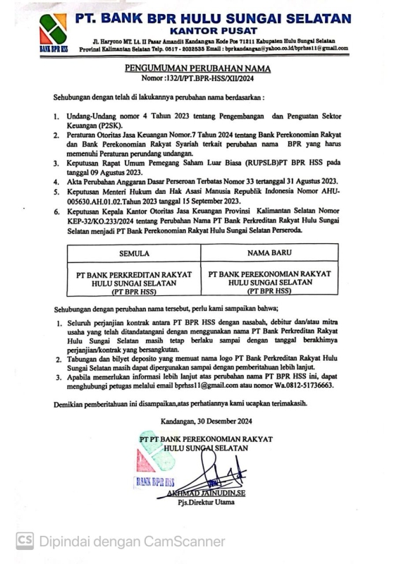 Dengan semangat kebersamaan, Bank BPR HSS terus berupaya memberikan pelayanan terbaik, menjaga kepercayaan, serta menjadi mitra terpercaya masyarakat Hulu Sungai Selatan.
